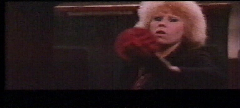 | During the title sequence Kate, an aspiring singer in the Punk culture of early Eighties London, is sticking up flyers for her bands next gig in an underground train. [Writing On The Wall] | |